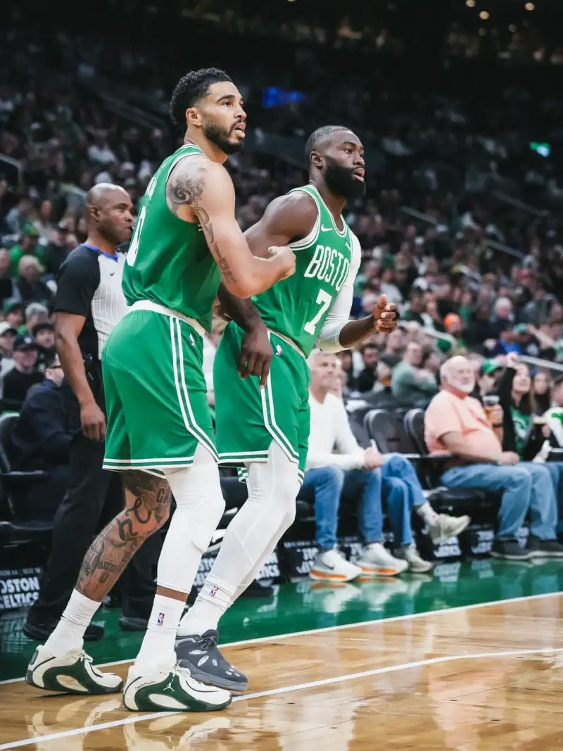 虎扑03月16日讯 凯尔特人官方更新Ins,晒出一组凯尔特人球员杰伦-布朗和杰森-塔图姆的赛场合影与球迷分享。